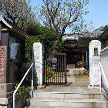 観音坂の通り沿いにあり、山門がお寺らしい雰囲気だが普通の住宅のようにも見える。正面奥に彫刻の立派な本堂があり、風格を感じることができた。