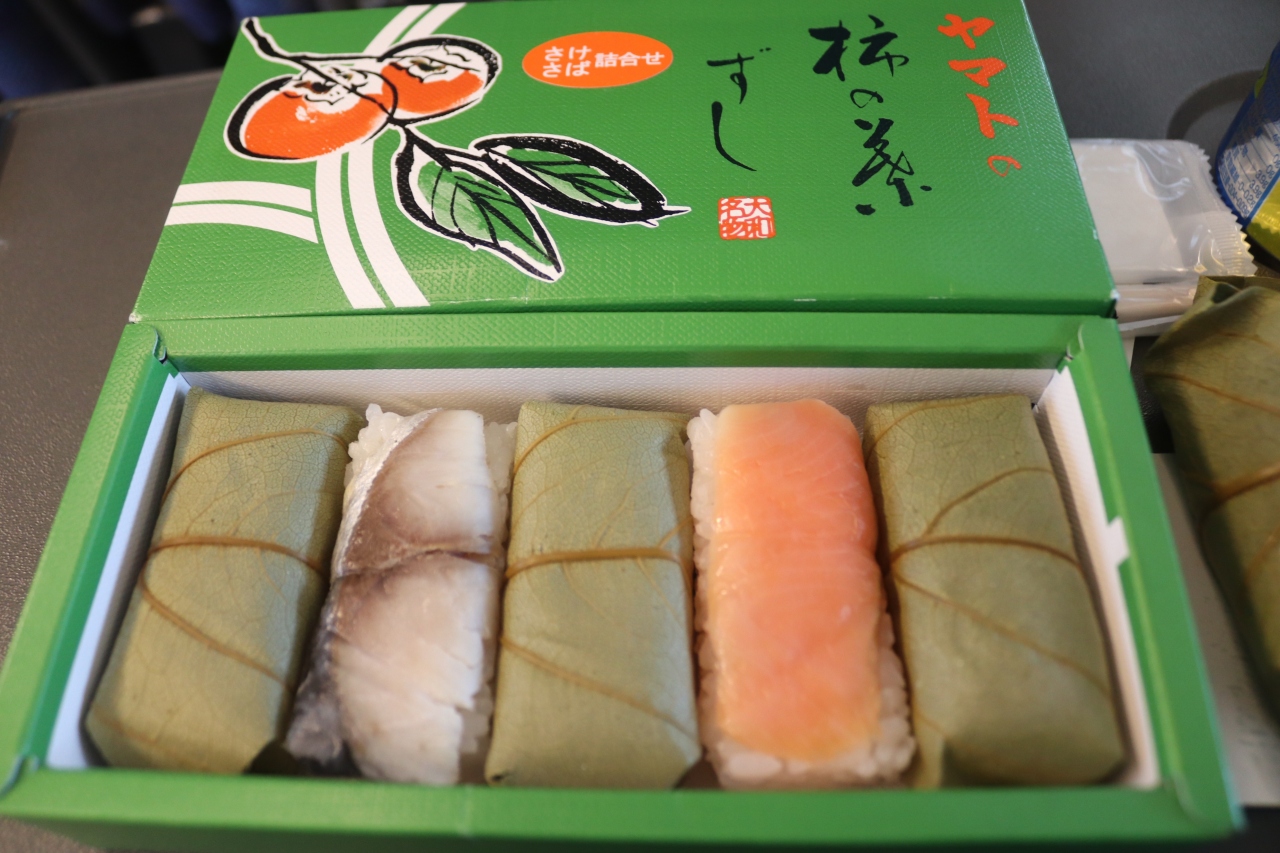 奈良では有名な柿の葉寿司のお店で県内に販売店があります。京都駅の駅弁売店でも扱っており、一口サイズで小腹が減った時にも車内でもちょっとつまむことができます。鯖や鮭のほか、焼鯖や炙り鯖の棒寿司もあります。