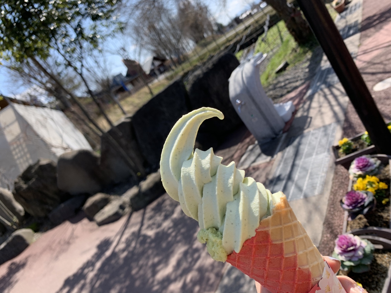 テイクアウトコーナーはやっていたのでわさびソフトを頂きました