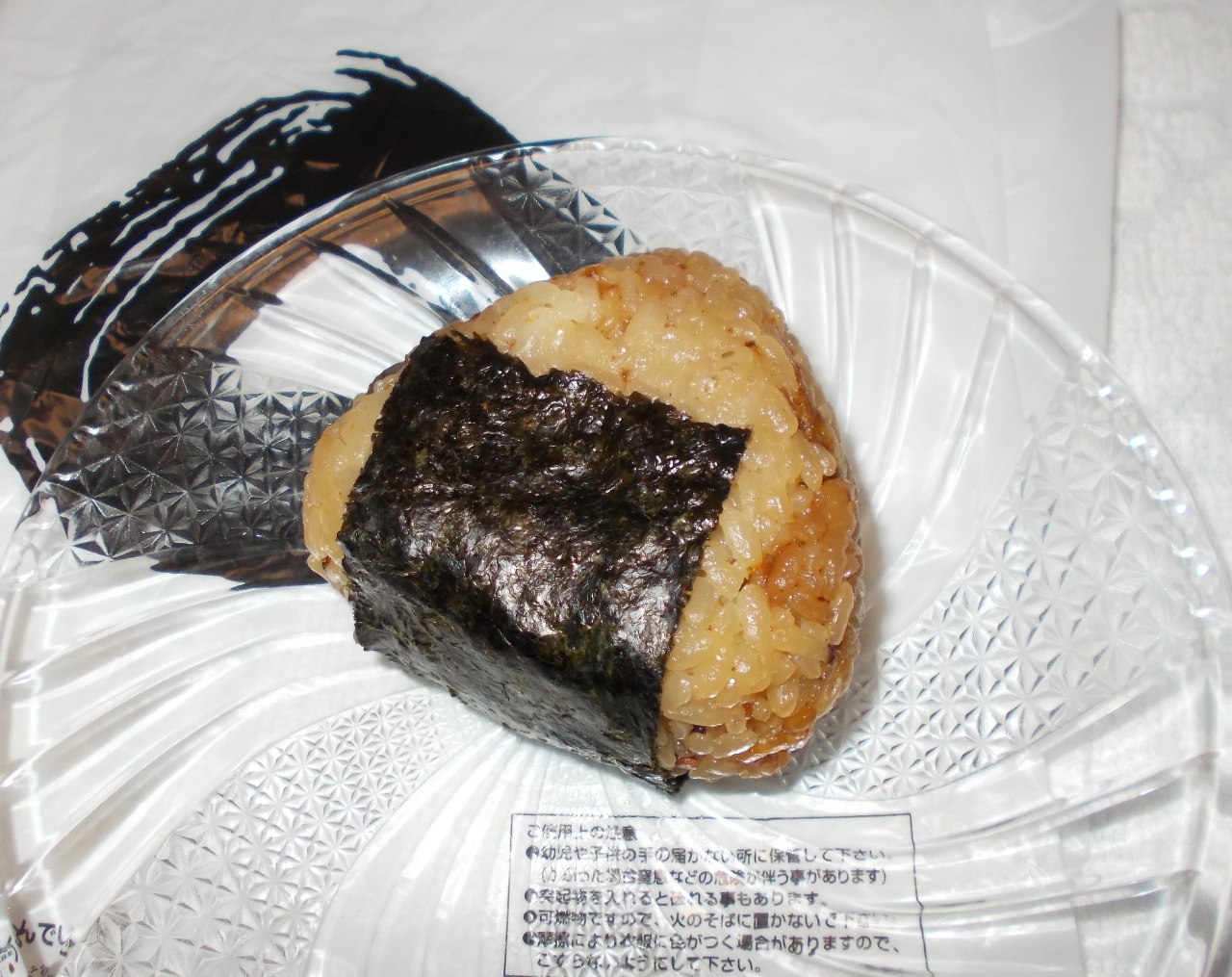 五目はだしご飯のお握り、中にはうずら玉子が入っています。