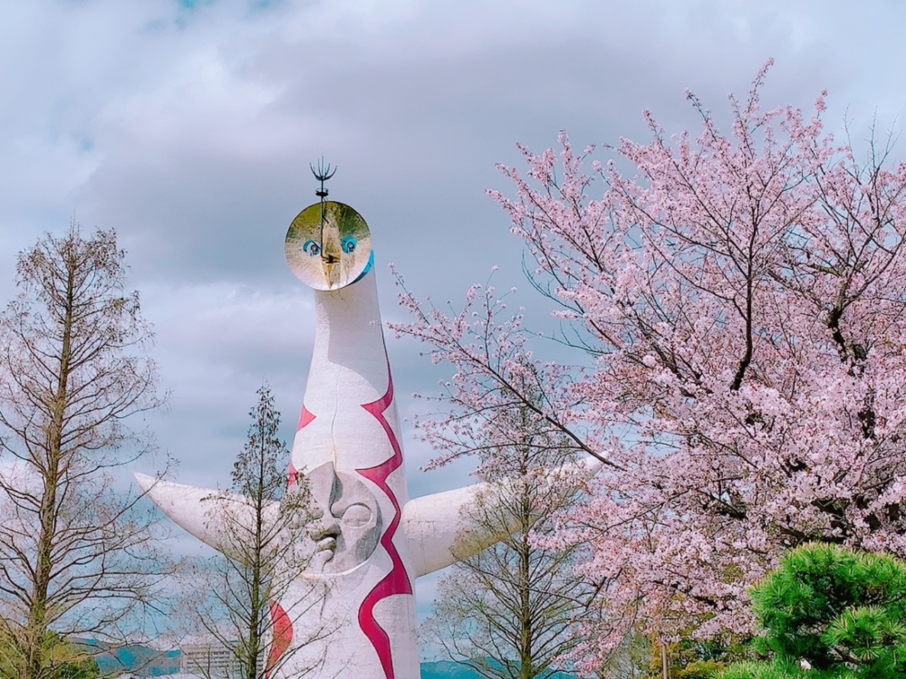 年に2回くらい訪れて、写真撮影を楽しんでいます。 万博記念公園駅から通路を歩いて行く場合は、自然文化園のエントランスを入ると目の前に太陽の塔が鎮座しており、すごい存在感です! 太陽の塔がある場所はかなり広い芝生広場になっており、周りに広がる花壇と一緒に写真を撮ることは出来ますが、基本的に万博記念公園の自然文化園内の色々な場所に広がる花畑(季節ごとに、チューリップやバラ、ひまわり、コスモスなどを楽しめる)は、太陽の塔よりも後ろに広がっているので、この塔とのコラボ写真を撮る場合は太陽の塔が後ろや、横向きでしか入りません。