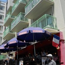 (赤い壁とか通りに向かって椅子が並んでいるってもうヨーロッパそのままですね)