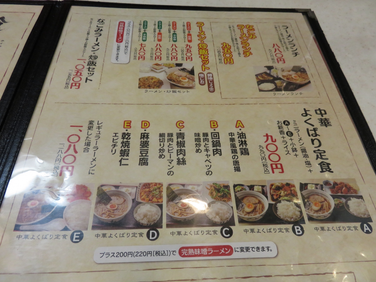 ラーメンとライス位と思っていたのですが「よくばり」に目がくらみ、よくばり回鍋肉定食に。回鍋肉のキャベツは芯が多くちょっと損しました。