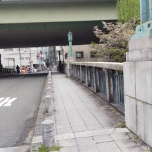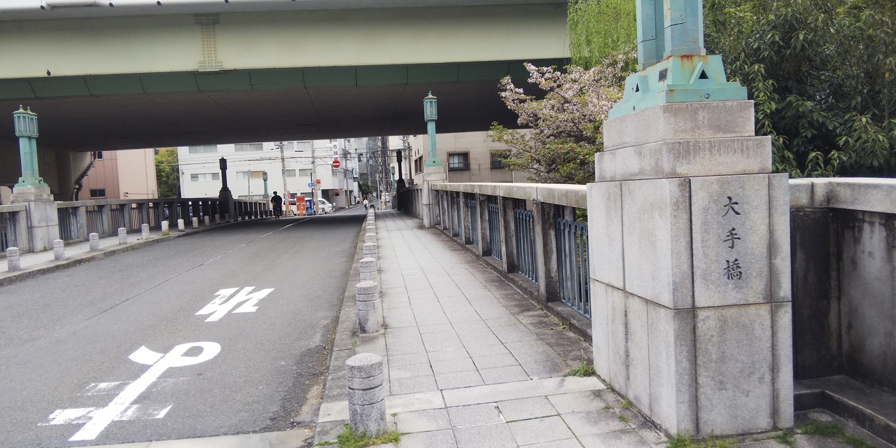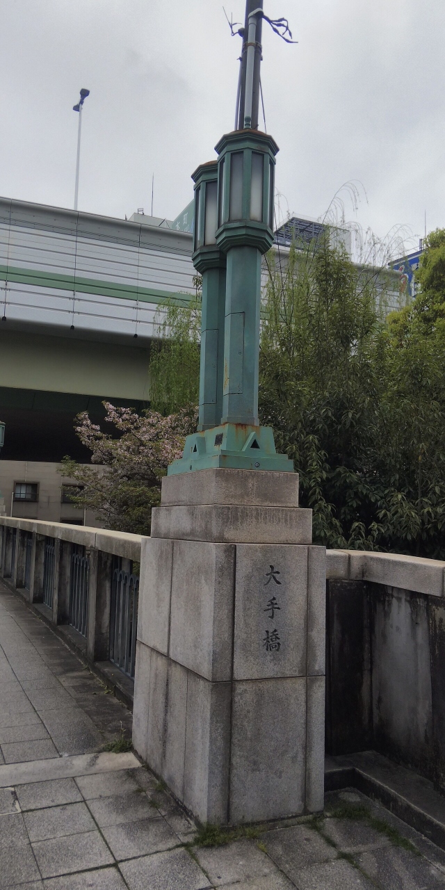大手橋は大阪市内を流れる東横堀川に架かる橋です。北側から葭屋橋を最初に、今橋、高麗橋、平野橋と続き、5番目に位置する橋です。4月初めに行きましたので、橋のすぐそばに小さいながらも桜の花が咲いていました。