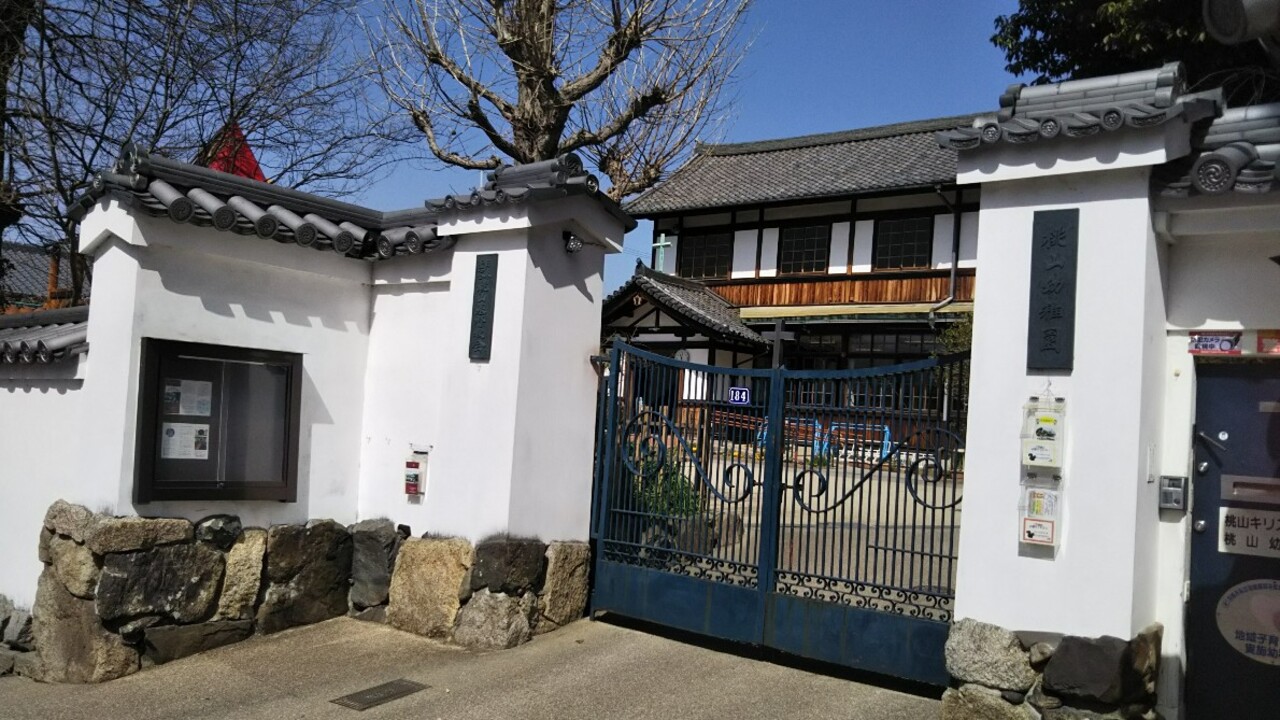 桃山御陵からまっすぐ東へ、御香宮神社へ向かって進んでるときに見つけた。門が閉まってので、中には入ってないけど、門の横に掲示板があって、そこにここのことが書かれてあった。京都五条聖ヨハネ教会のウイリアムス主教のもとで、伏見でしばしば伝道集会が行われれいたことが始まり