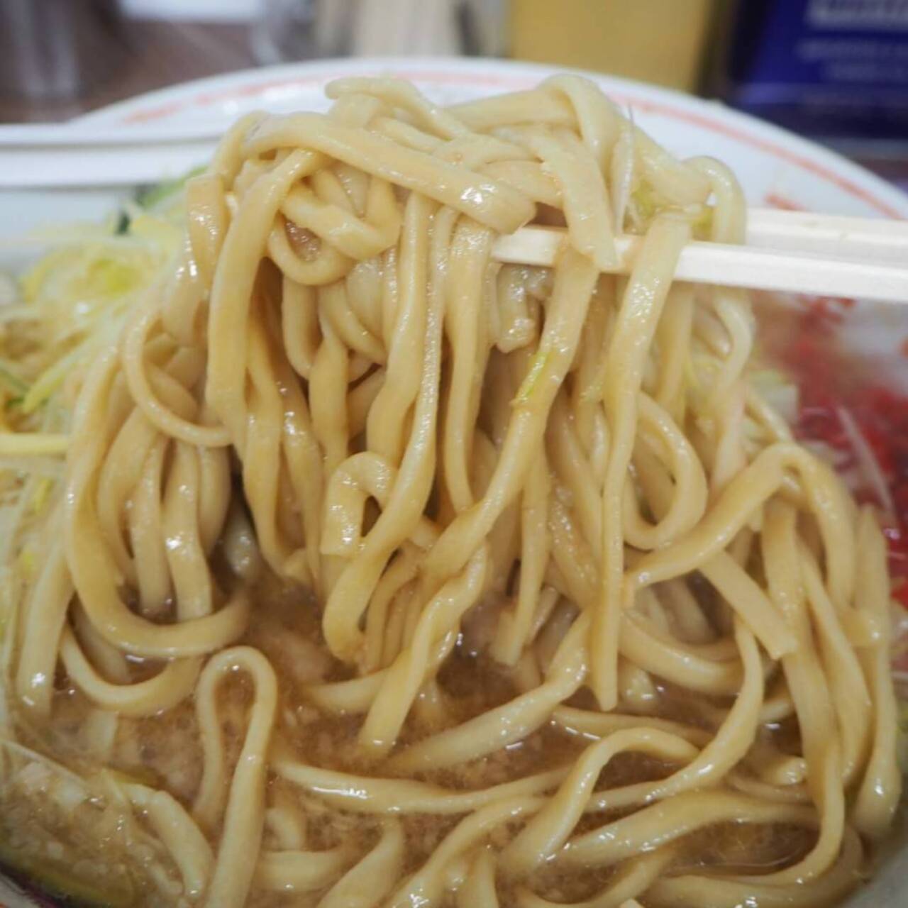 スープは見た目通り濃厚そのもので、麺も小麦の風味がしっかりと感じられる極太麺です。