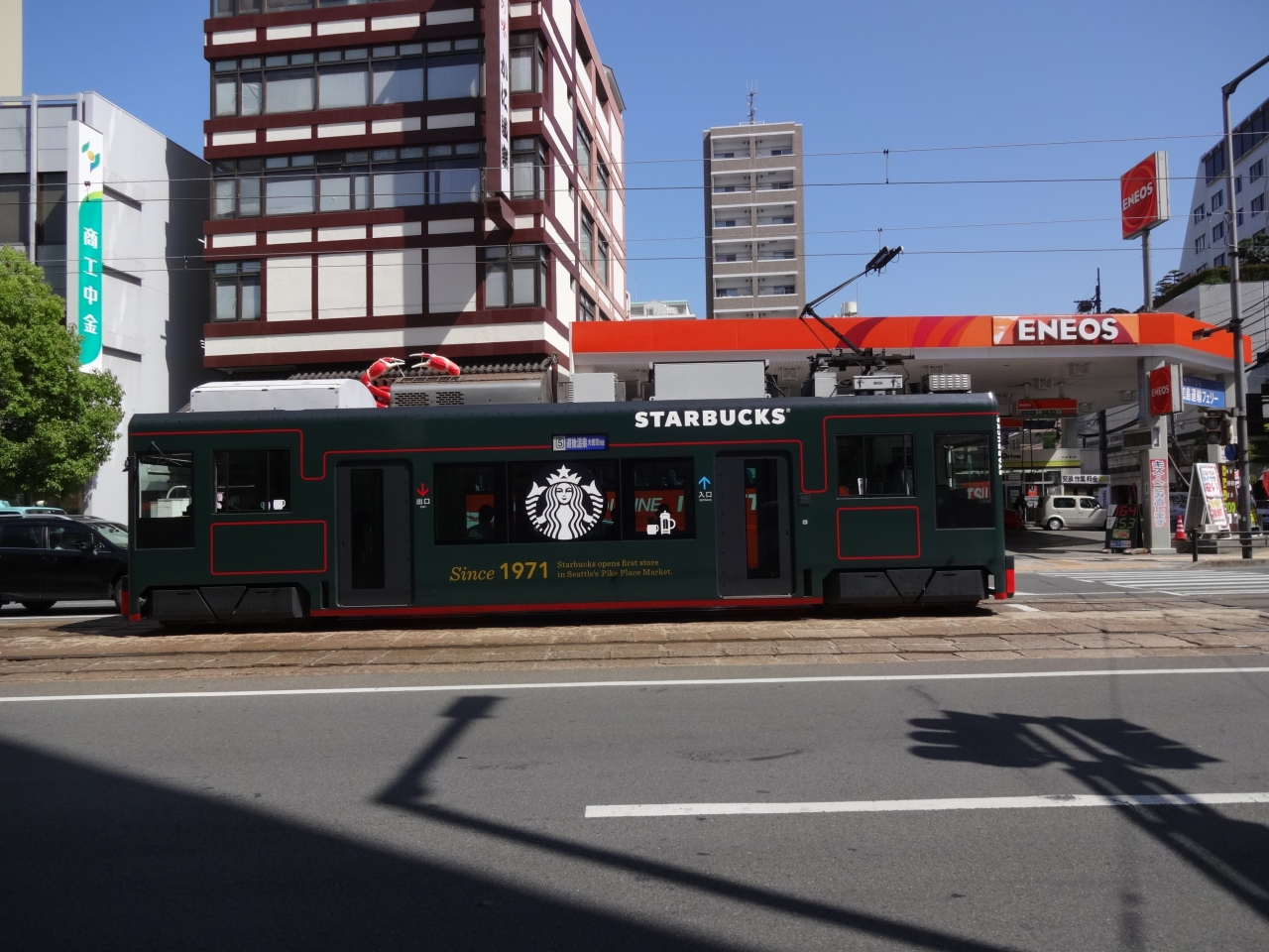 伊予鉄道とは、愛媛県松山市を中心に走る私鉄で、略称は「伊予鉄」(いよてつ)。伊予鉄道の電車は、市電(路面電車/LRT)の他に郊外電車(普通車両)があるが、路面電車のみを利用。松山城の周りを囲むように松山市内を巡ったり、道後温泉などの観光スポットへの移動に便利な足。料金は一律料金だが小銭・両替が必要で、SUICAが使えないのが面倒だ。車両は、旧式のチンチン電車や低床LRTなど様々で、気軽に乗り込んで、ゆっくり・のんびりと移動するのが良い。