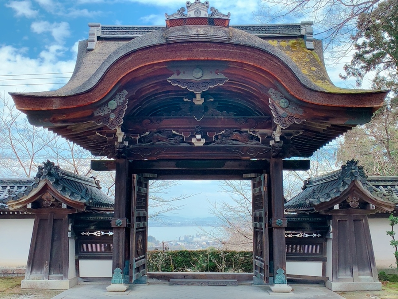 このお寺の1番の見どころは、唐門から見える琵琶湖の景色だと思います。