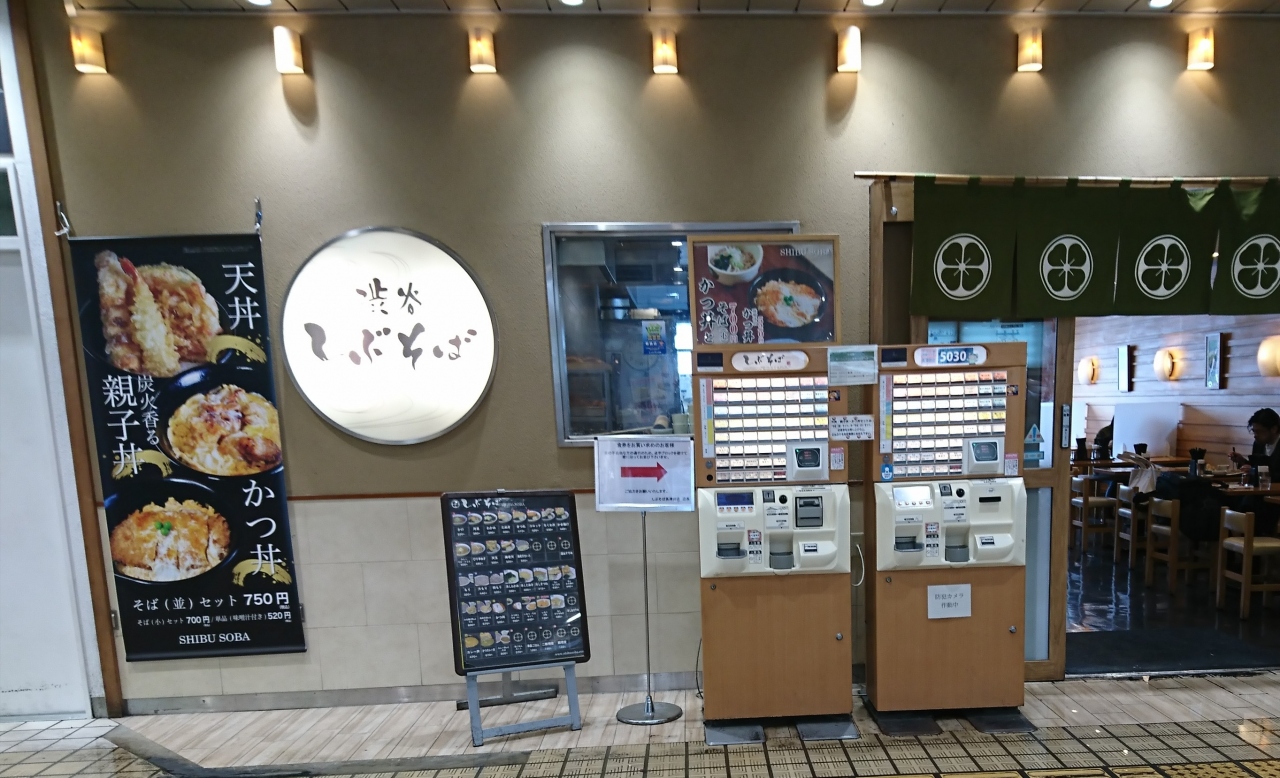 長津田の東急改札をでたところにあります。店外の食券販売機で購入してから店に入るのですが、よく駅にある立ち食い蕎麦ではなく、着席スタイルです。店内は広いので、1人でもテーブル席でゆったりと食事ができます。電車のキャラクターのるるんの蒲鉾を期間限定で販売したり、しぶくまという店員キャラクターを作っていたり、蕎麦以外にも楽しい事をしているお店です。