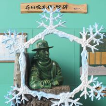 中には石川啄木の銅像や啄木の詩歌についての案内板がありました。
