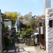 山門から本堂のある所は標高が低くなっており、谷のような地形のところに立地しているのが特徴。本堂はコンパクトな印象だが立派な建築だと感じた。桜も満開できれいだった。