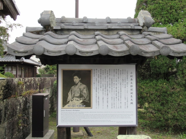 新型コロナウイルスの影響でマスクが欠かせない中、三密を避け「飫肥城」と「城下町」を訪問しました。その中には多くの見どころがありこの「小村寿太郎生誕地碑」もそのひとつです。碑文は元帥東郷平八郎の書でポーツマス条約の仕上げとして清国との交渉に向かう小村に対する思いを託したものと言われています。実はここに「小村寿太郎生家」があったのですが武家屋敷通りに移築されていて現在は「旧山本猪平家」が建っています。これを含めて「商家資料館」と「旧高橋源次郎家」も入館無料で立派なお屋敷を見学することができました。