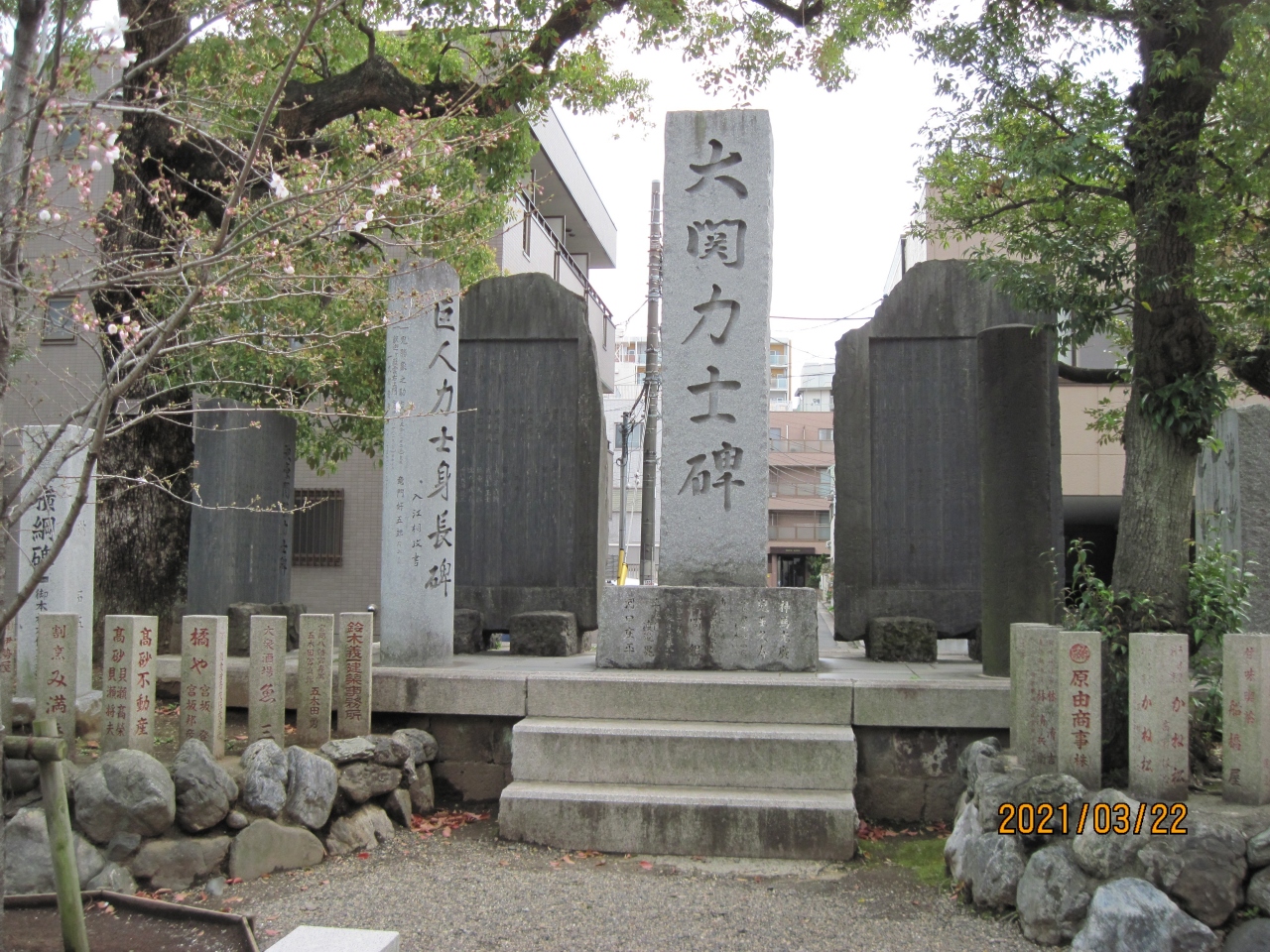 富岡八幡宮の鳥居を入ってすぐ右手に石碑が建っていました。江戸時代に境内で勧進相撲が行われたことが由来のようです。巨人力士身長の碑もあって、大きさの比較ができて面白かったです。ほかに境内には横綱の石碑もあって、大相撲との縁が深かったことを偲ばせてくれました。