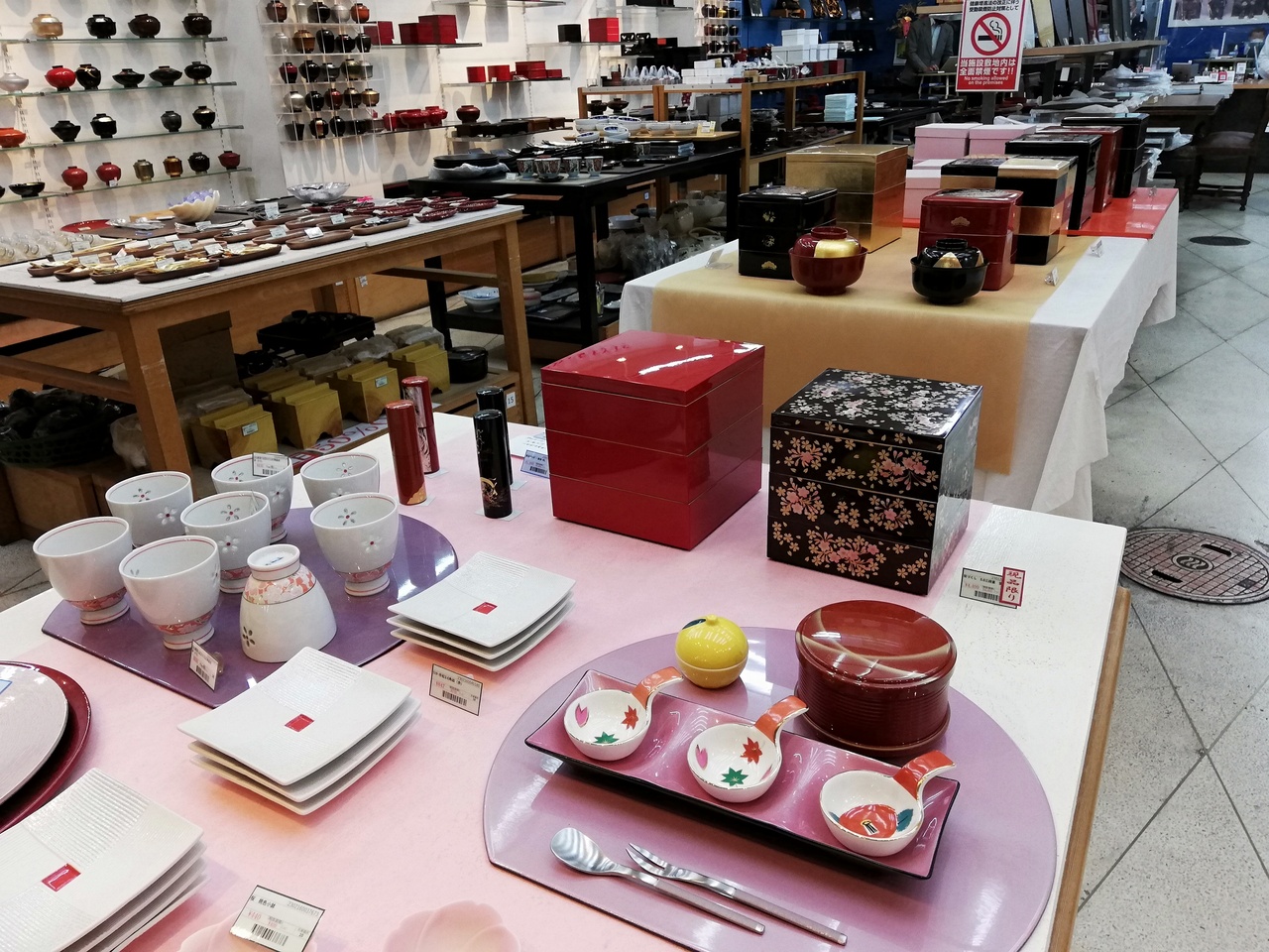 道具屋筋にあるお店です。和柄の食器・テーブルウェアが多く、こちらの一店舗のみで、和食器はだいたい一式揃えられると思います。小皿は200円ぐらいからで、お箸も種類が多いので、外国人観光客には特にオススメです。店内は広くて見やすいです。支払いはPayPay使えます。