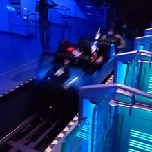 暗闇には無数の星が光り、その中を走ります。暗いので速度も速く感じられ、スリリングなアトラクションです。