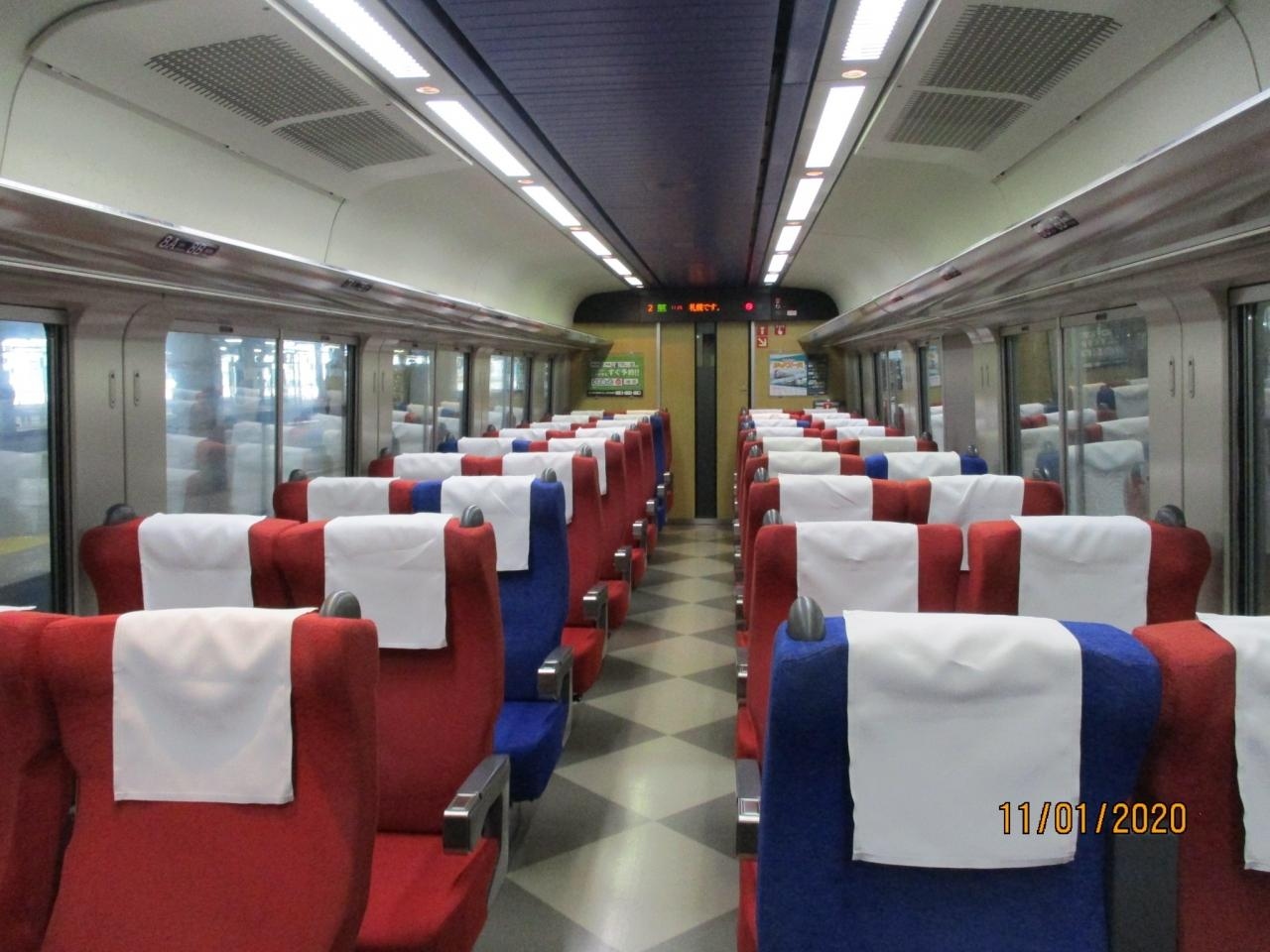 スタイリッシュな赤(時々青が混ざる)シートで、快適な列車旅でした。
