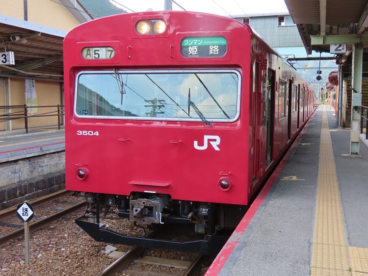 山陰線・和田山と山陽線・姫路を結ぶ陰陽連絡線のひとつです。和田山・寺前が非電化区間なので、気動車の特急はまかぜが走っています。上り・下り各1回全区間乗車していますが、最初は姫路駅のホームでワインレッドの103系を見かけて妙に魅かれたのを覚えています。