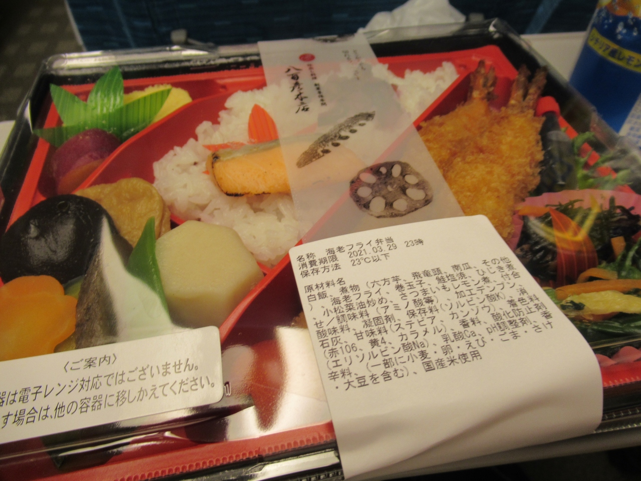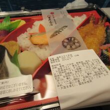 新幹線に乗る前に名古屋駅直結の高島屋の地下でお弁当を買いました。デパ地下はお店が多くて迷いましたが、お惣菜がいろいろ入っていて、リーズナブルだったので、こちらのお店で購入しました。お弁当なので、味付けは少し濃いめで、ご飯が進みました。おかずは多いですが、ご飯は控えめでしたので、お酒のお供にも良いかもしれません。