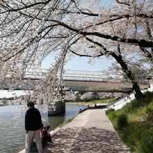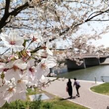 岡崎公園へ花見に行く前にちょっと寄ってみました。さくらのしろばし…名前のとおり桜のよく似合う橋です。橋の上からは乙川沿いの桜もよく見え、ヒノキの香りをかぎながら花見ができます。橋の南端からは岡城もチラリと眺められます。