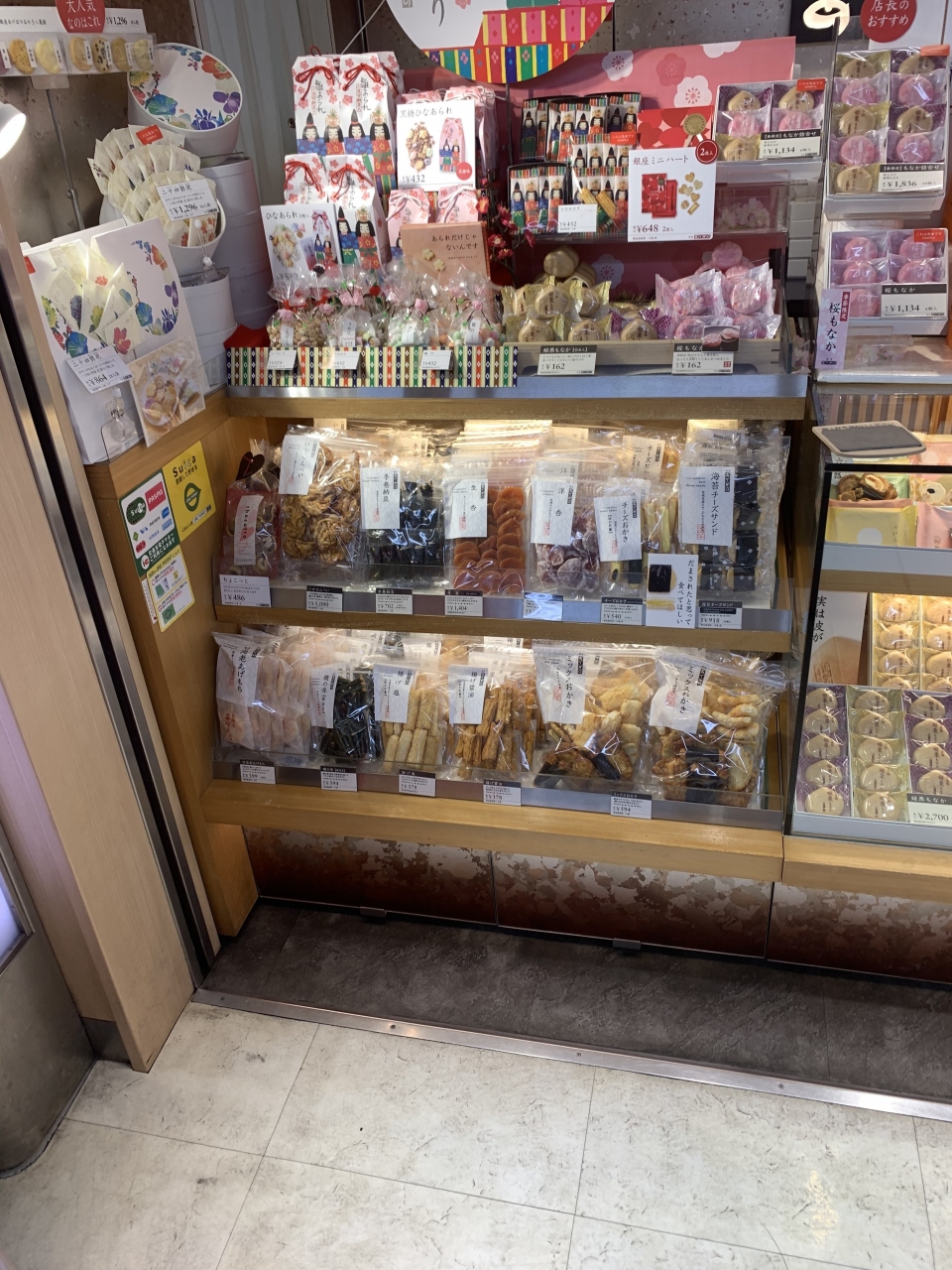2月中旬だったので 「雛あられ」「ひなおかき」など 可愛らしい商品が並んでいました。