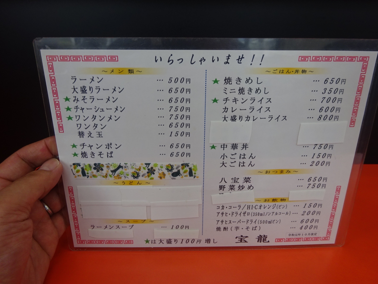 メニューは地元に根を張った「町中華」という感じで、ラーメン・ちゃんぽん類と焼きめしがメイン。もともとうどん類もメニューにあるようですが、コロナの影響かメニューを絞っていて、扱っていませんでした。