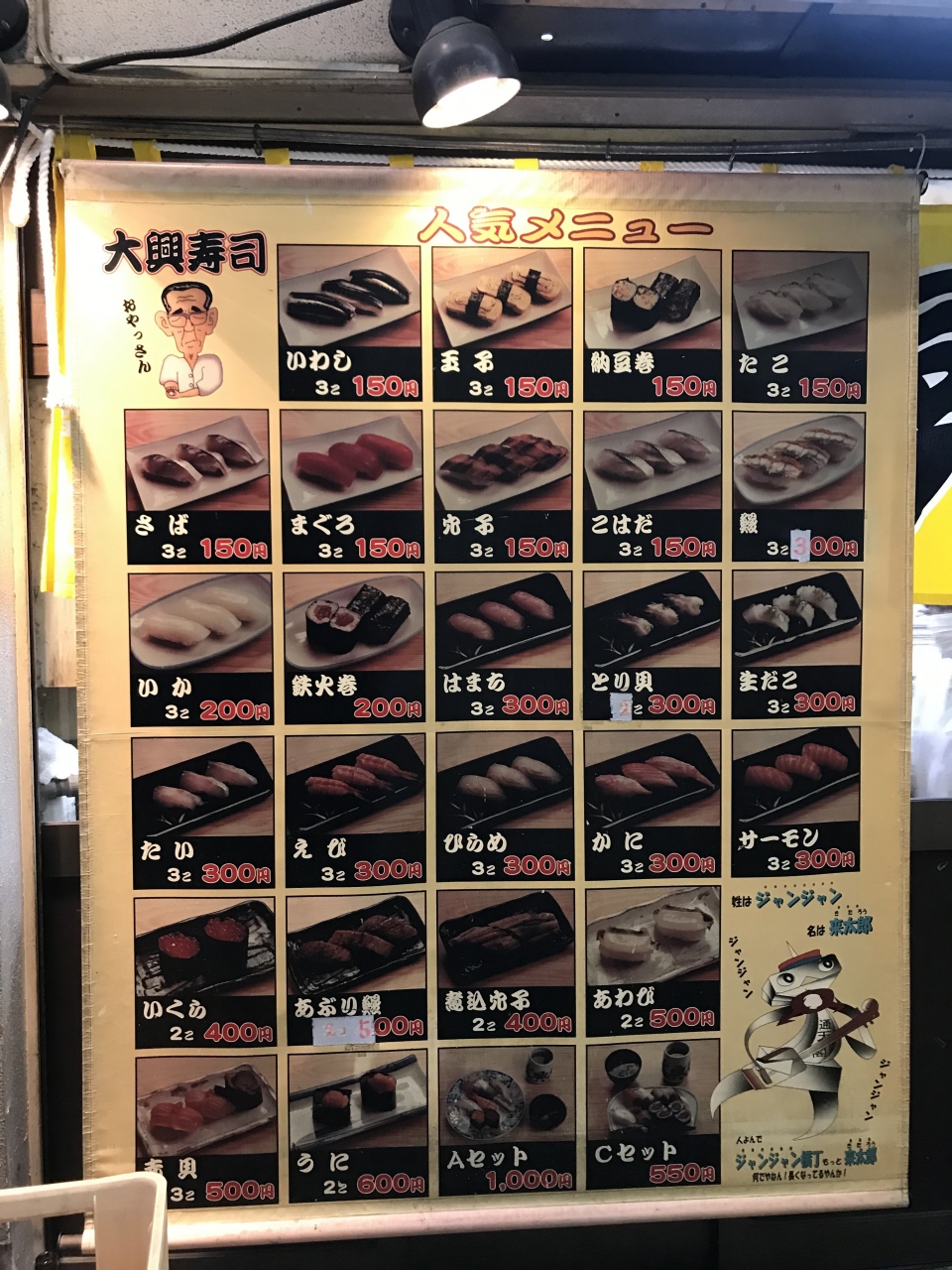 ジャンジャン横丁の大興寿司南店、まあ安いからそれなり