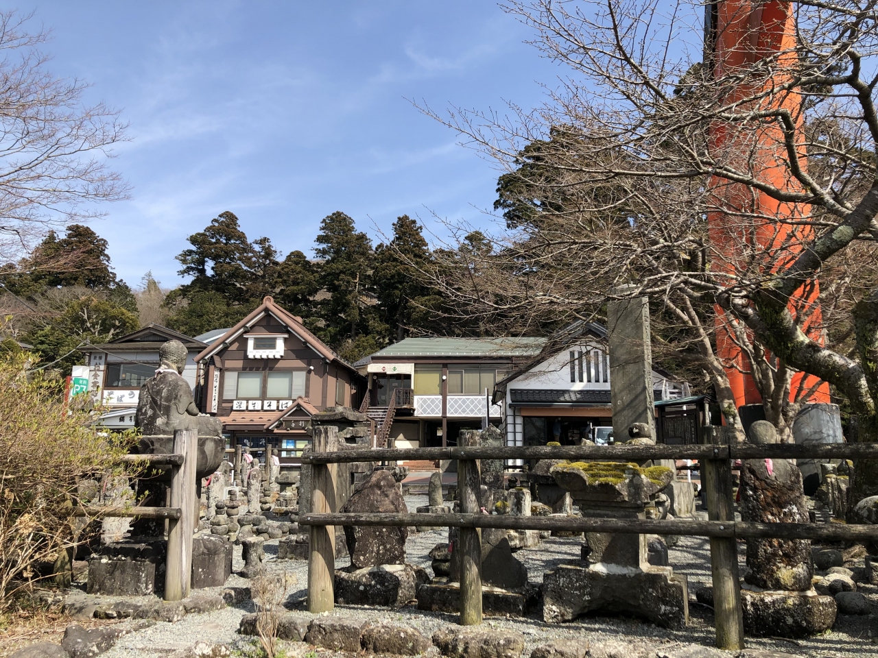 芦ノ湖畔を通る国道1号線をまたいで立てられている箱根神社の一の鳥居、この鳥居のすぐ横(芦ノ湖側)に、石仏や石塔がずらりと並んでいる場所があります。芦ノ湖畔のこのあたりは、にぎやかな観光スポットですが、この賽の河原の所だけ、異空間のように厳かな空気になっています。