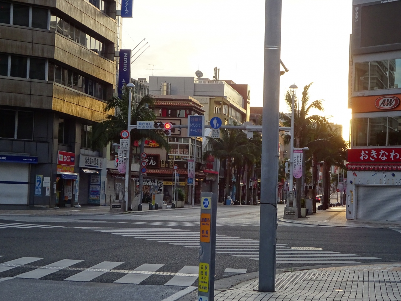 早朝の国際通りを散歩しましたが、流石に人通りも少なく開いているのはコンビニだけでした。