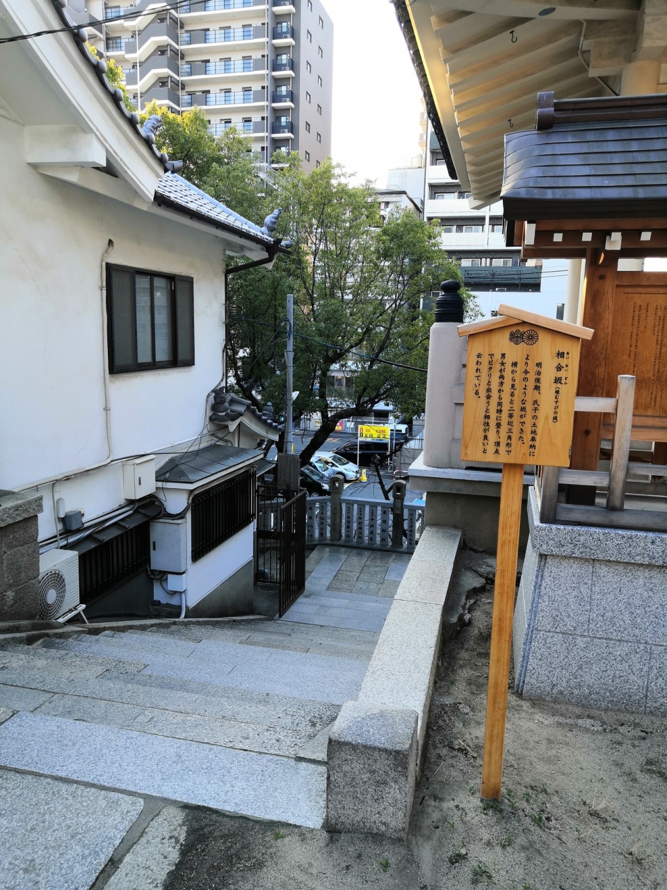 本殿の西側にあります。横から見ると二等辺三角形になっているので、南北両方から登れるように階段があり、男女がそれぞれ南側と北側から登って上でピタリと出会うと相性がよいらしいですが、オジサンの一人旅ではあまり関係なかったですね。