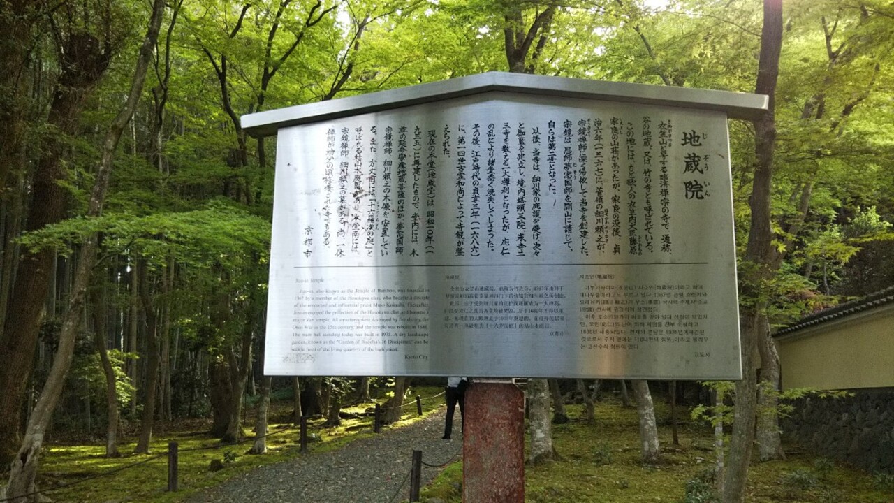 ちょっとだけ不便な場所だしどうかなと思ってたら、ちらほら来てる人もいたな。でも車の人のほうが多かったけど。正門入ったとこからすでに竹がすごい生えてるやん。襖絵も公開してる。竹の寺以外にも谷の地蔵とも呼ばれてる。十六羅漢の庭がある。