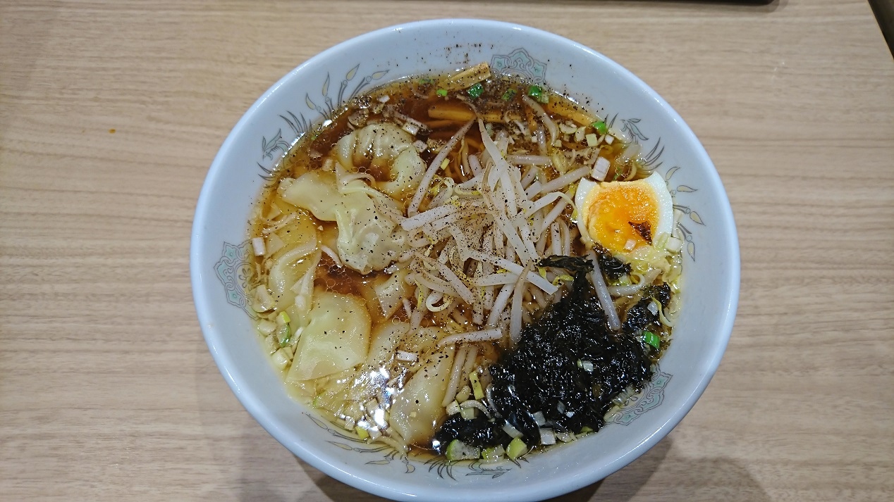 浦安市明海4丁目の商業施設・ニューコースト新浦安の1階フードコートにある中華料理屋さんです。ランチでワンタン麺800円をいただきました。具はゆで卵半分、海苔、モヤシ、ネギで、主役の肉ワンタンは5個ほど。コシのある縮れ麺と醤油系中華スープの一品です。肉ワンタンが予想外に美味しく、満足のランチとなりました。