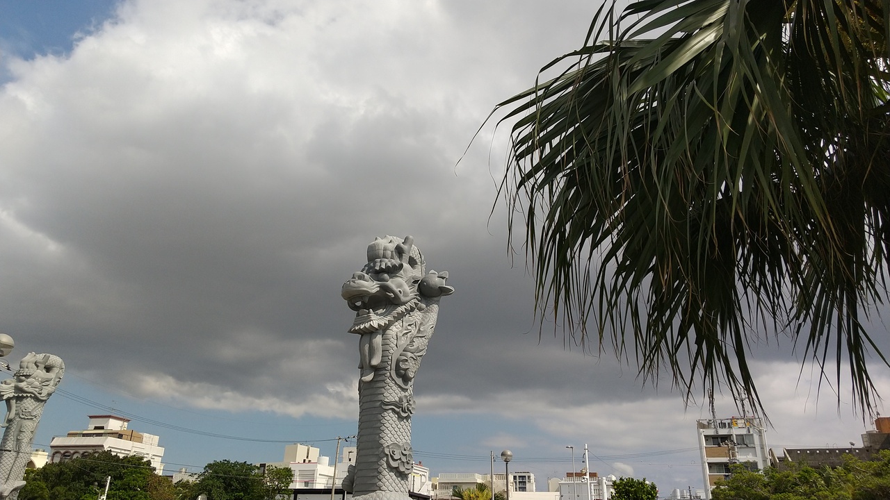 有料駐車スペースが広く巨大な龍柱があります。波の上ビーチまで近いので公園内を散策し海開きされたビーチまで行くと泳ぐ人の姿もちらほら。市民の憩いの場で囲碁をする人、日光浴する人の姿も見られました。