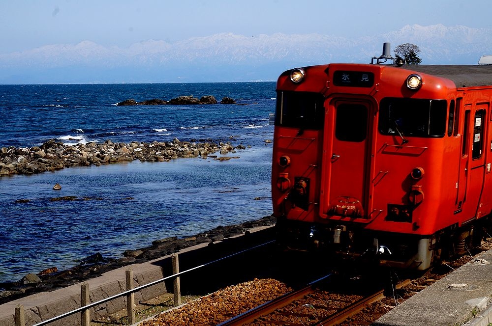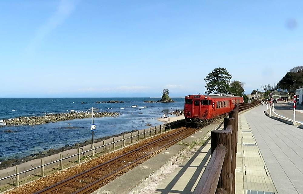 穴が開いた岩があって人が入っていても、そうとは気づかず、撮影もしませんでした。運よく氷見線の列車が通過する場面に遭遇し、そのビデオを撮ることはできました。