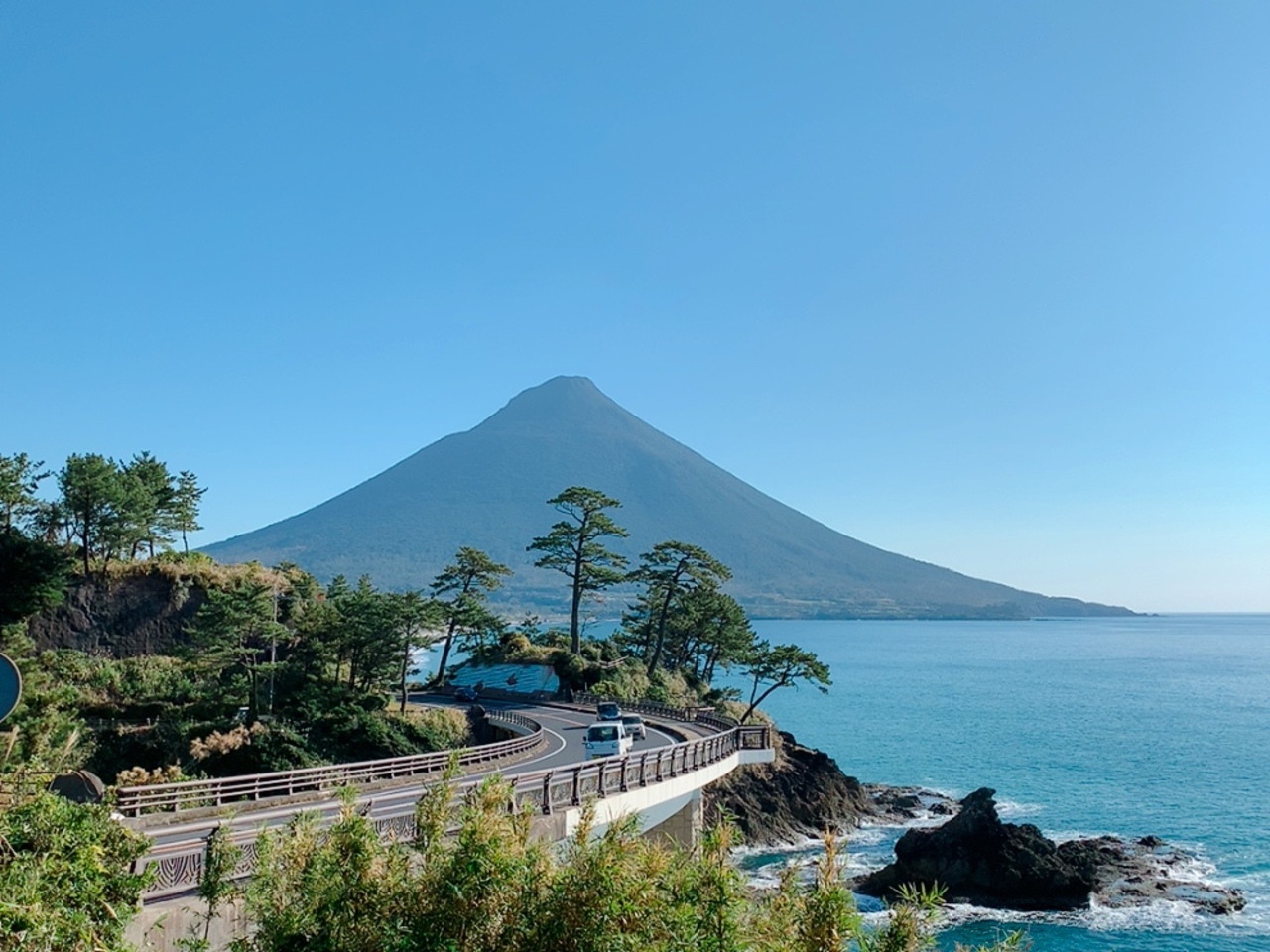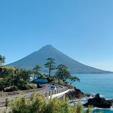 国道226号線沿いにあり、ちょうどカーブのところなので、障害物なく遠くの開聞岳が良く見渡せます。 お天気が良ければ、青い空に、青い海…と開聞岳のコラボは本当に素晴らしい眺めですよ。