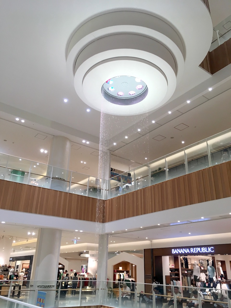 天井からシャワーのように水が降りそそいでいて、見ていて綺麗でした。