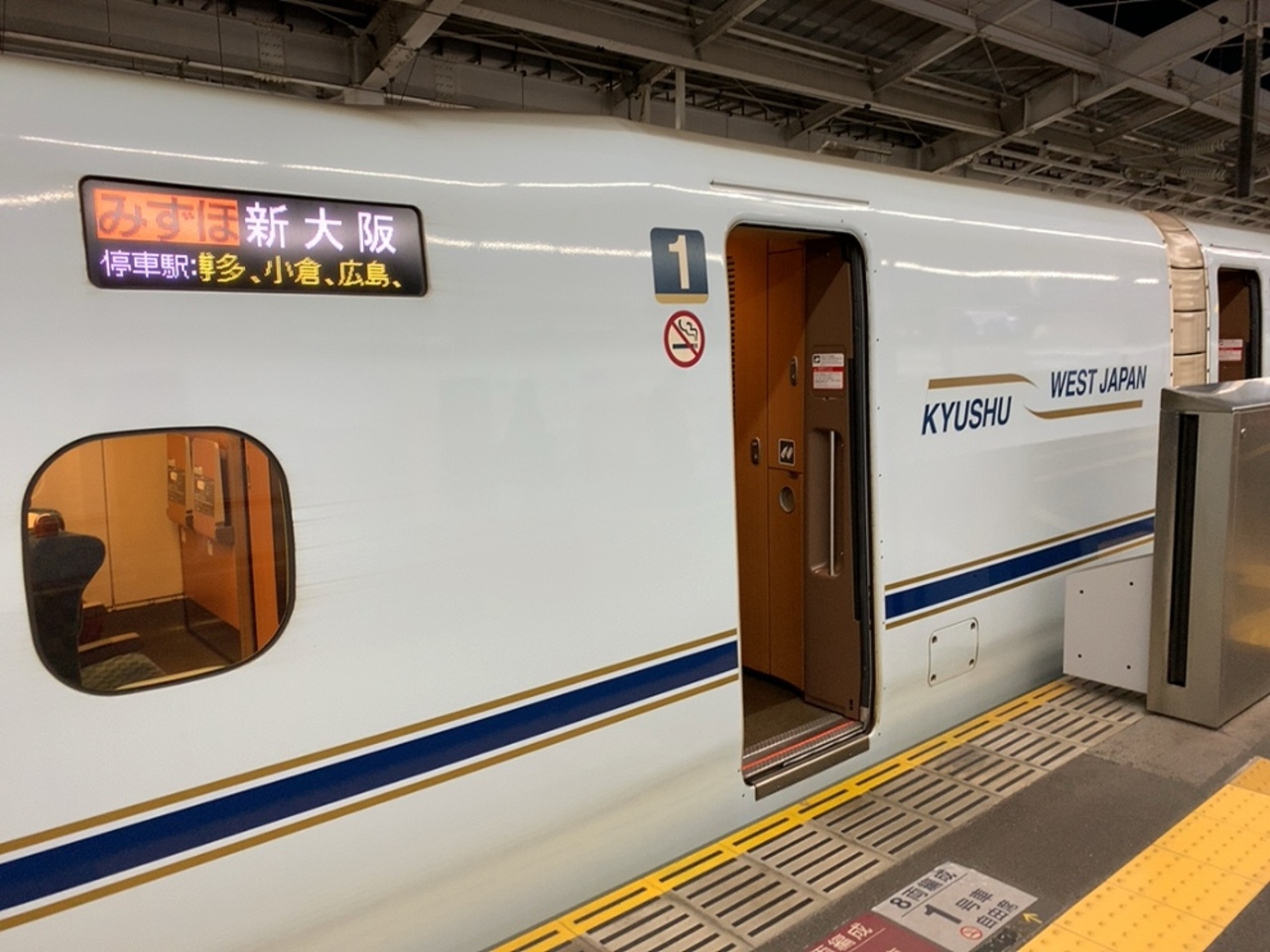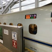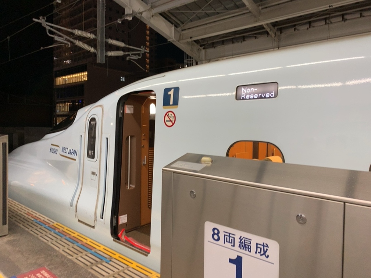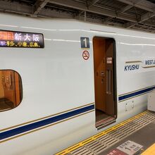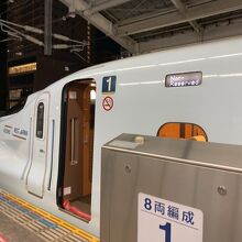 東海道新幹線で走ってるN700系と同じですが、車体の色がちょっとだけブルーがかってる感じがします。 速達型の新幹線なので、主要駅にしか停車せず、かなり早く目的地に到着できるので、ビジネス客や急いでる方には便利な新幹線ですね。 私が乗った時はガラガラでした…。
