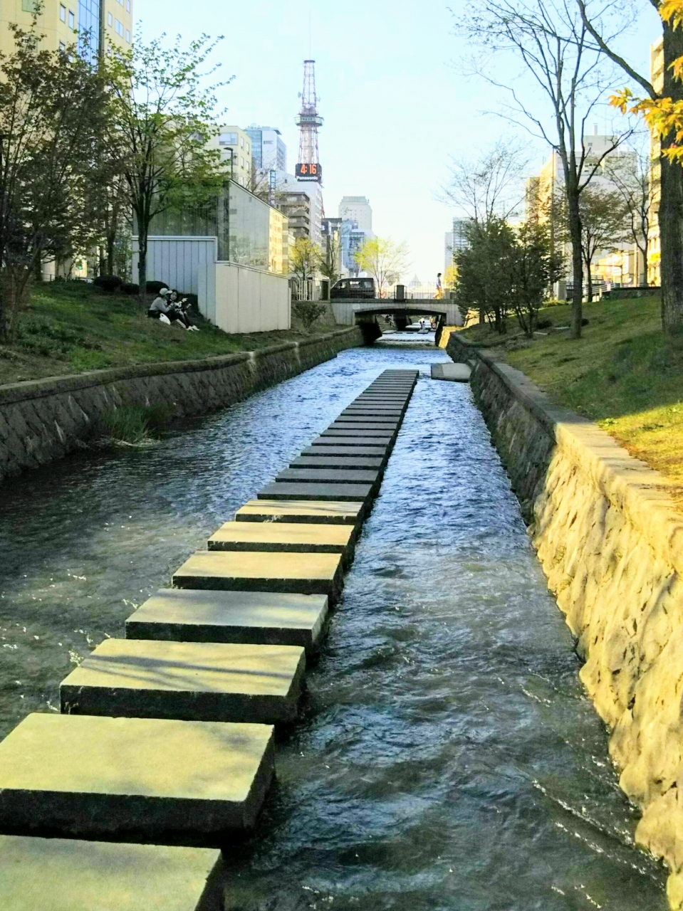 札幌市中心部の東西起点で、南北に流れる『創成川』は江戸時代につくられた用水路「大友掘」が前身の人工河川です。