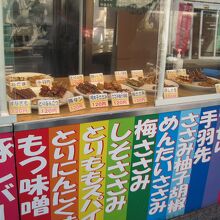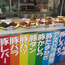 砂町商店街に入る左手のお店で、店名は肉の中島ですが、持ち帰り専門の焼き鳥、焼きトン類がメインのお店です。ショーケースの前にメニューが貼ってありますが、種類が豊富でどれもリーズナブルに購入できます。ほかに焼き豚もおすすめです。