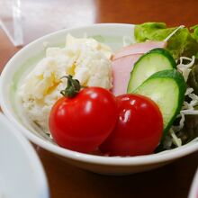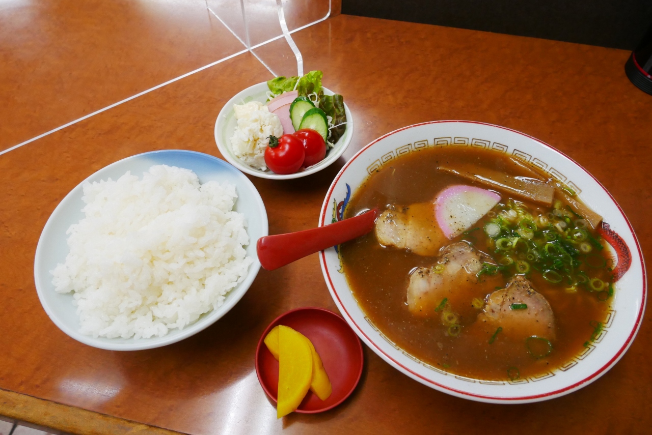 中華そば600円、昼のサービスご飯+小鉢一品が150円