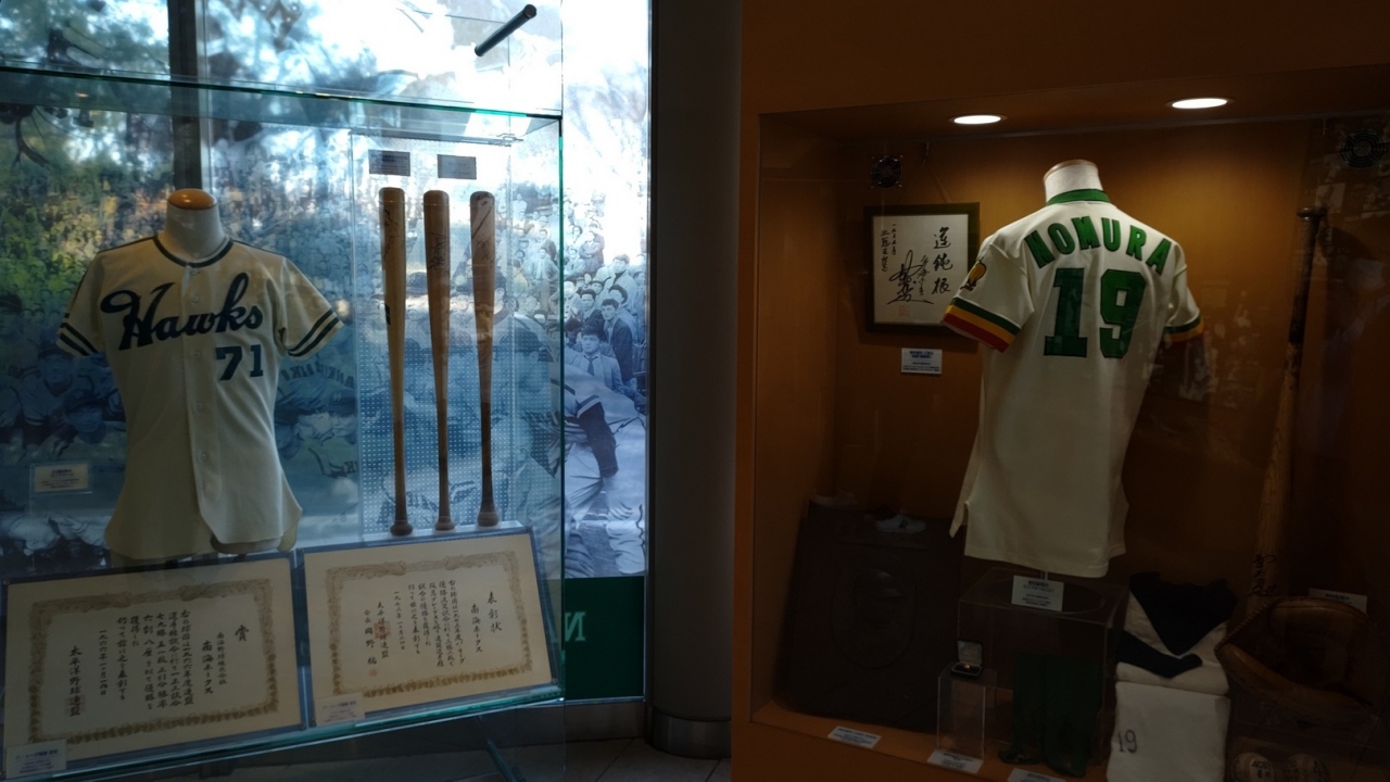 なんばパークス最上階にあります。かつてこの地に大阪球場がありました。かつては阪神をしのぐ人気を誇ったパリーグの名門チームの痕跡を今に伝えています。今年から偉大な野村克也氏のユニフォームも展示されました。今は福岡ソフトバンクに球団が引き継がれましたが先人の偉業を今に伝える貴重な場所です