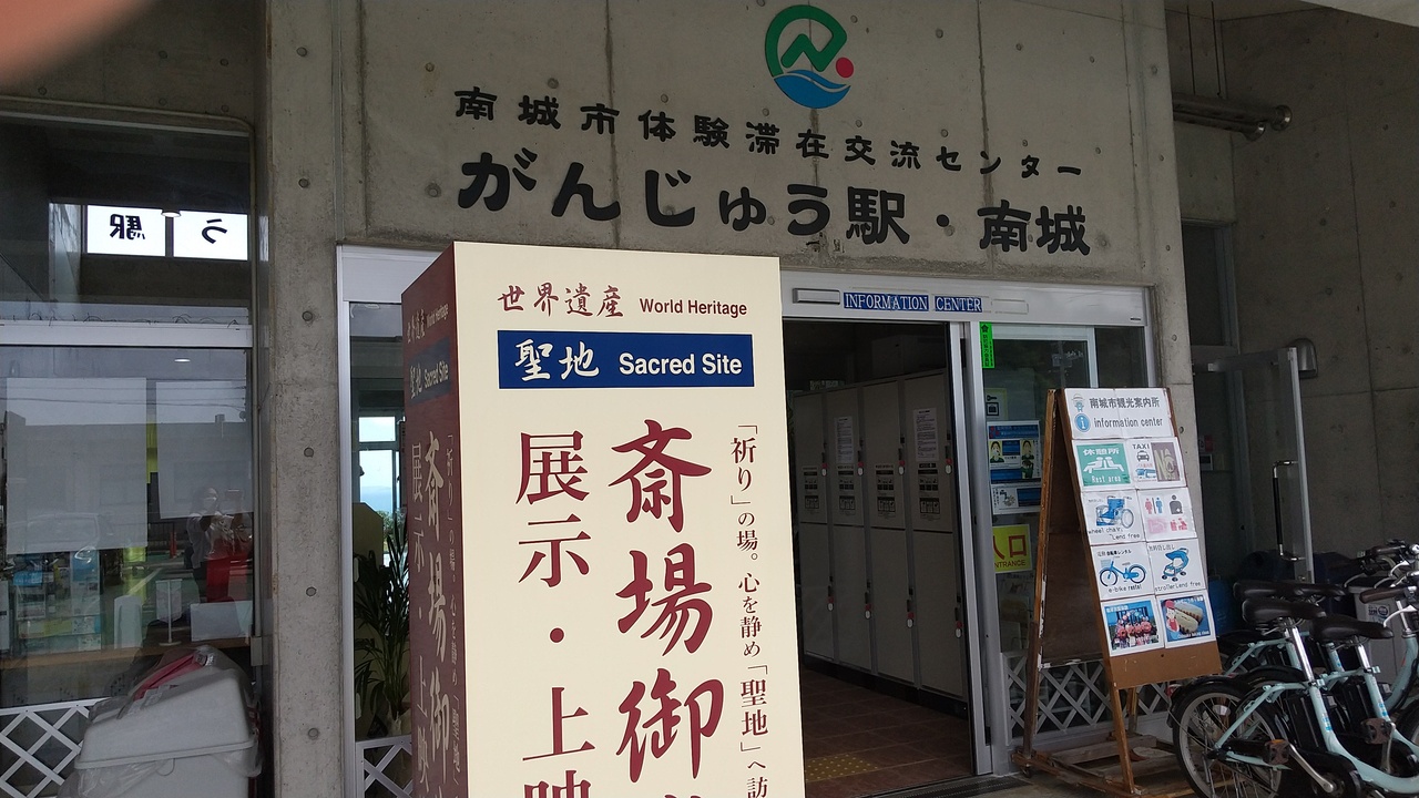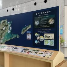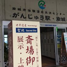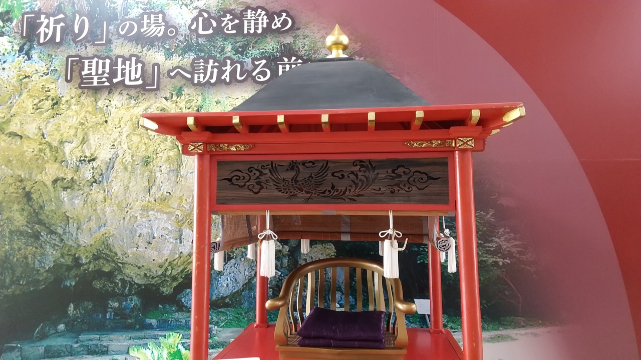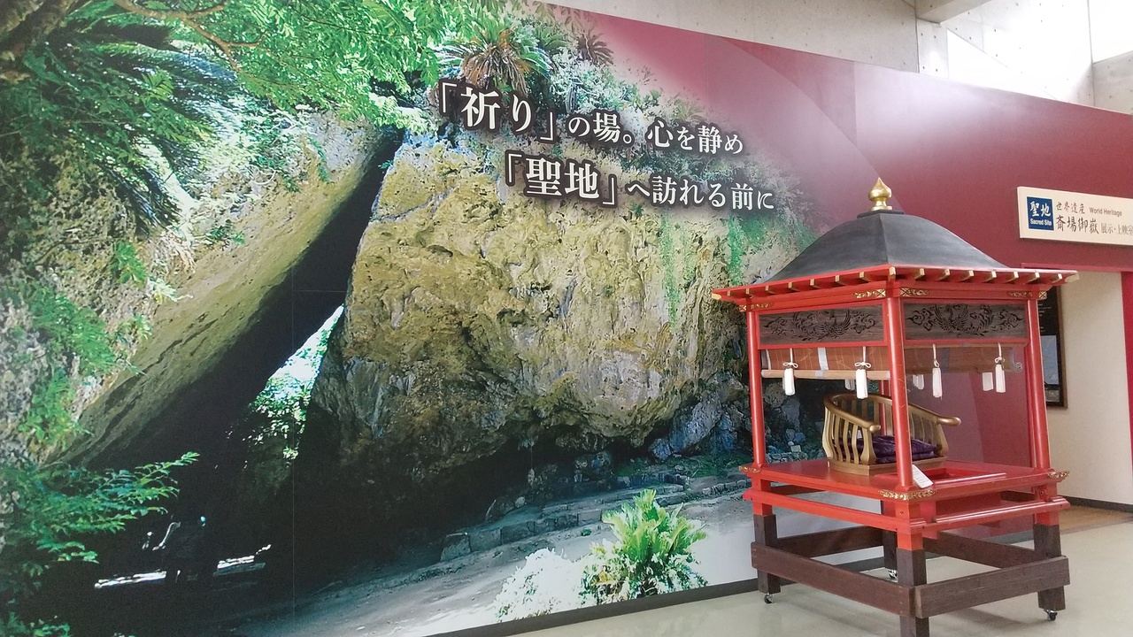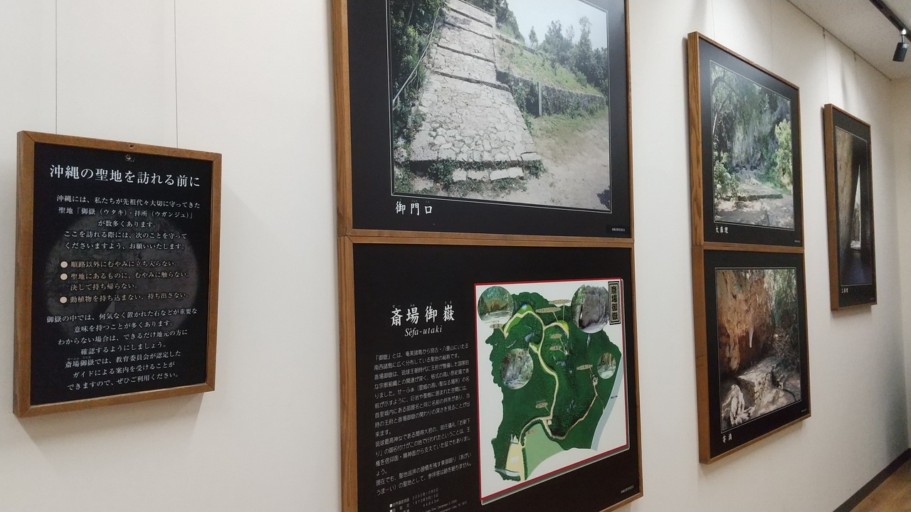 斎場御嶽の写真や説明展示、映像紹介がありますが映像は中止期間でした。