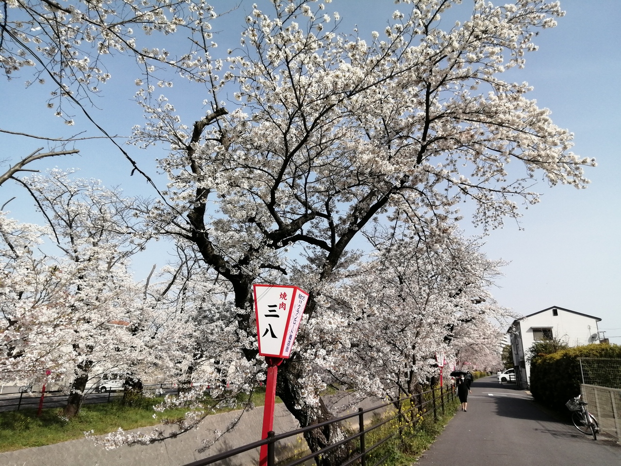 伊賀川沿いの桜をチャリでぶらりと見てきました。特にきれいだったのは桜の木が密集している、木造の「さくら小橋」~小呂川が合流する辺り。距離にして700mほどでしょうか。夜間のライトアップ用に“ぼんぼり”や提灯も設置されていていい雰囲気でした。桜も満開。川はそんなにきれいではありませんが、水辺の桜はやはり映えます。岡�公園の桜も見事ですが、伊賀川桜堤も決して負けていないと思います。