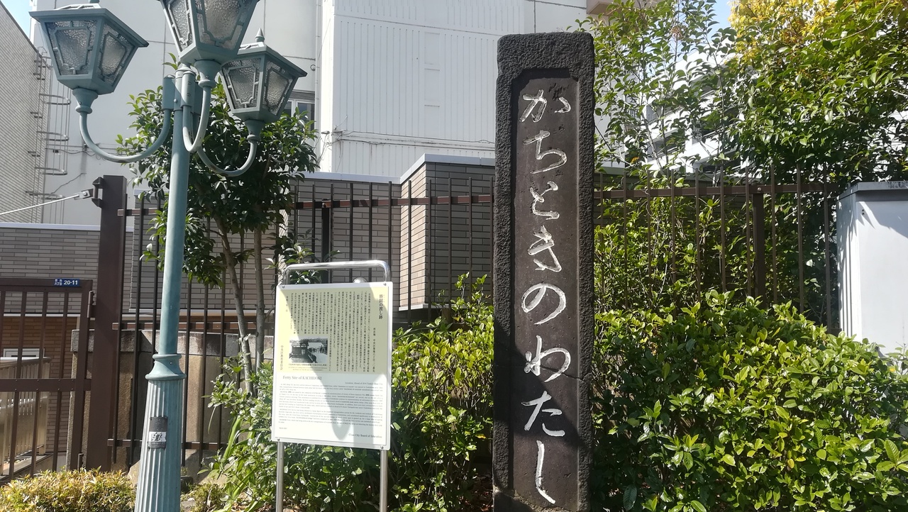 何年か前に、伺ったことがありました。 久々に行ってみましたら、閉鎖中の看板が。残念です。入口には、勝どきの渡しの碑が建っていました。勝どきの名称の由来は、