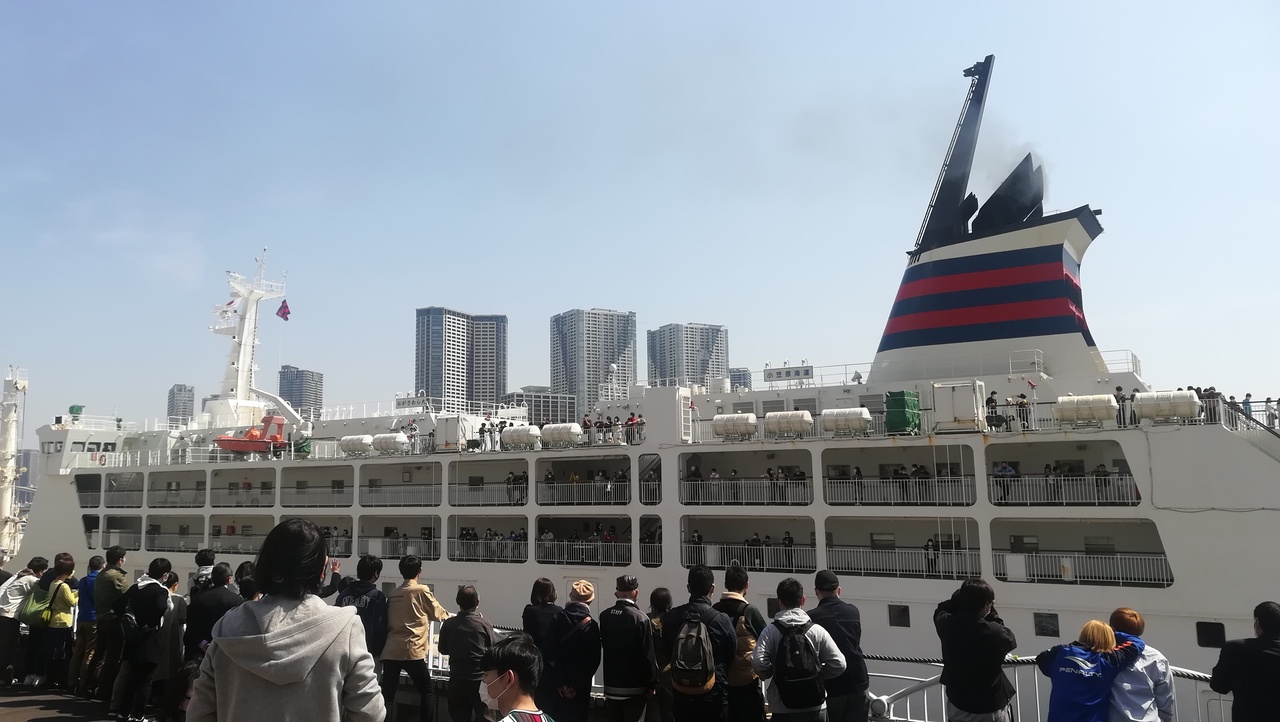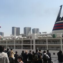 広場を臨みながら、ふと埠頭方面を見まさしたら、人が沢山出ていました。