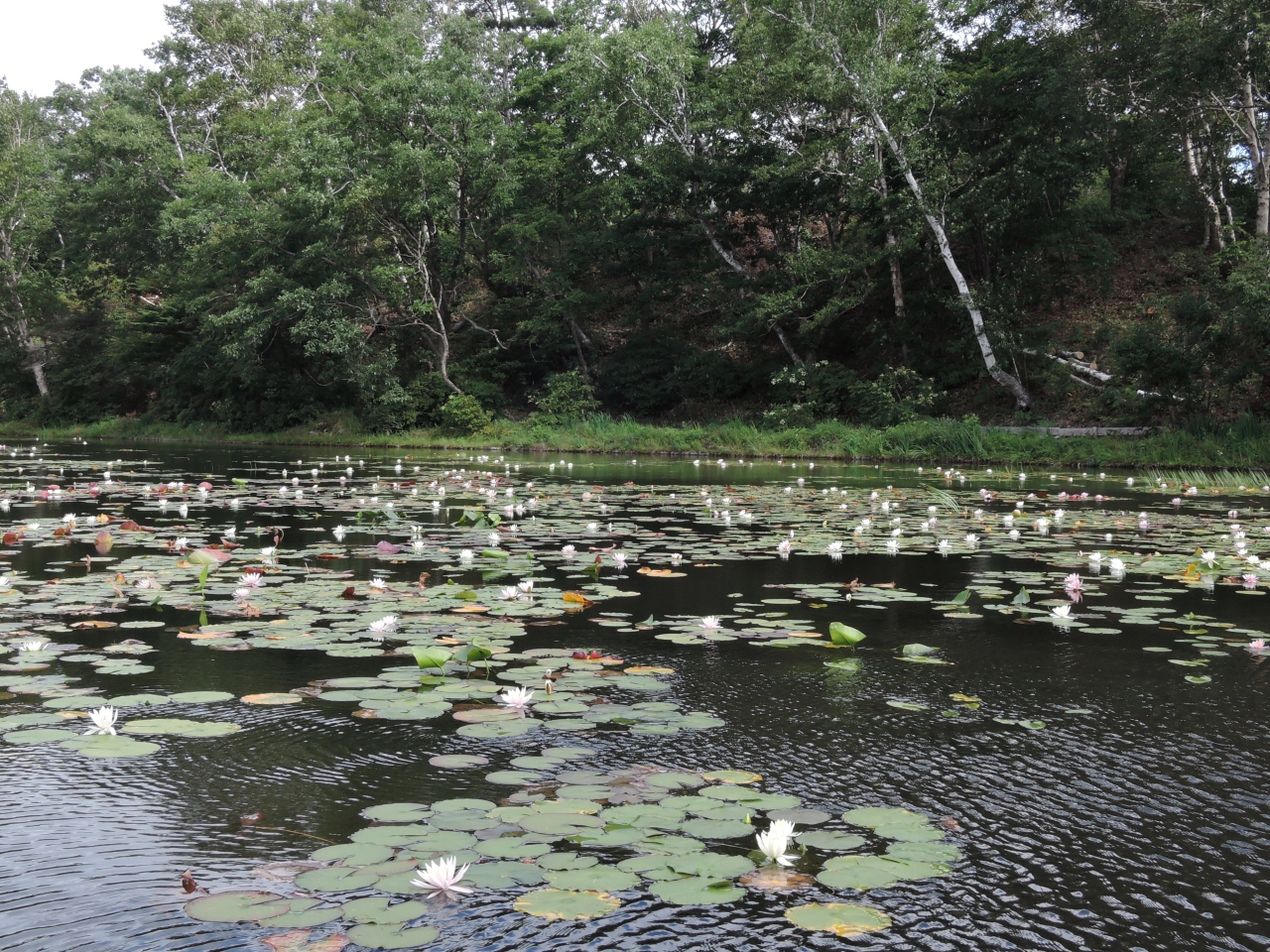 信州の紅葉スポットを探すために、初めてこの蓮池に。池の片側の白樺林と池の水面に咲く蓮の白い花が印象的。時折、高原の涼しい微風が水面をなでるように。素晴らしい景色だ。紅葉の時期にはもっと素晴らしい絶景になること間違いなし。蓮池の案内看板や整備された木道もあり、池を一周することも。池の近くには山の駅があるが、あいにくこの日は定休日。トイレだけは利用可能。山の駅前には長電バスのバス停があってアクセスもよい。