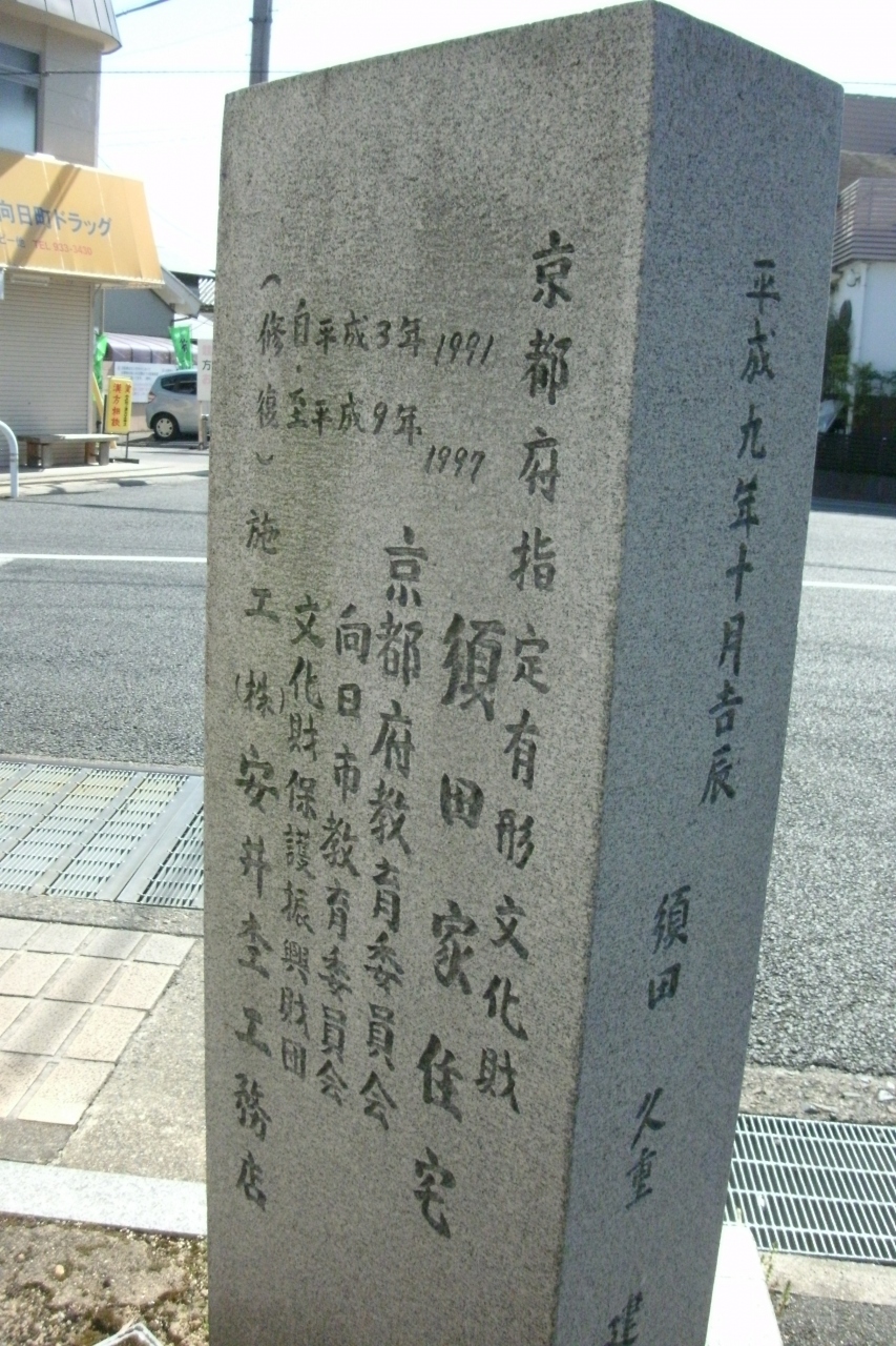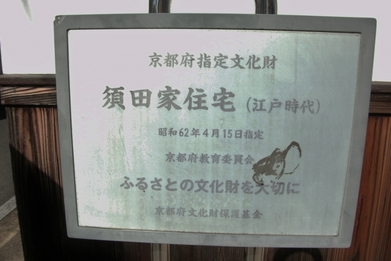 阪急電鉄西向日駅の北西、西国街道(県道67号線)と愛宕道の分岐点、建物の前には江戸期古街道の石碑が立っています。「須田家住宅」は、屋号を“松葉屋”といい、明治30年代まで醤油の製造販売を営んでいた旧家だそうで、現在の表札も“松葉屋”となっています。建物の外観は切妻造り、桟瓦葺で、門口には中央に大戸口を設け、ばったん床机もあり、門口の北側に格子の出窓や格子窓を設けていて歴史を感じさせる。残念ながら普段は非公開ですが、年二回ほど申込制による特別公開が行われているそうなので内部を観て見たいと思いました、