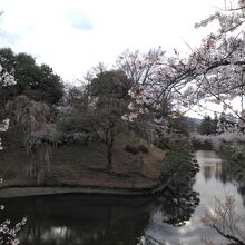 2021年4月6日、某桜の開花情報サイトで「満開」とあったので行ってみました。有料の広い駐車場があります。広い公園内の桜は、一部は散り始めでしたが、かなり散っている物もあって、見応えはいまいちでした。