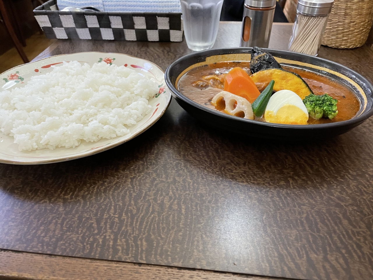 チキンレッグが丸ごとと素揚げした野菜の盛られたカレーが確か1000円ちょいだった。