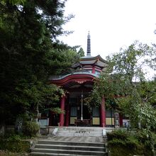 本堂が変わった形で、色も鮮やかで興味深いです。