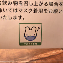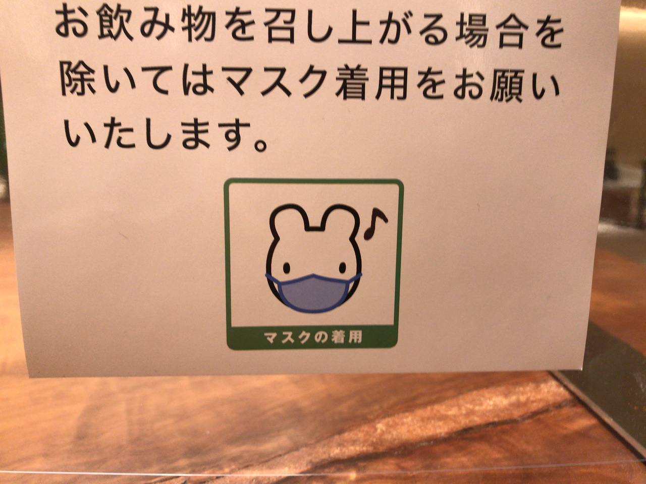 西武そごうといえばおかいものくまさんですが、プラチナサロン内の席にあるパーテーションに、かわいいおかいものくまさんがマスクをしている案内がありました。